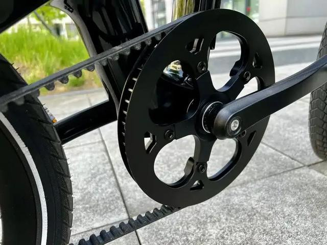 外观设计上堪其“冰岛黑”配色在众多电动自行车中脱颖而出。碳纤维框架不仅质量上乘,表面还略带光泽,碳纤维的纹理在光线下闪耀,展现出独特的质感。与传统的折叠自行车不同,ADO Air Carbon采用了20英寸宽的1.75英寸轮胎,这不仅保证了出色的骑行性能,还通过轮胎外侧的反光条提升了夜间行车的安全性。
